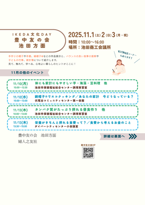 11月1日から3日まで池田市内各所で開催される「IKEDA文化DAY]、友の会は池田商工会議所で展示発表します。