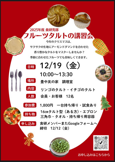 チラシのグーグルフォームから、または食研究部にお申し込みください。