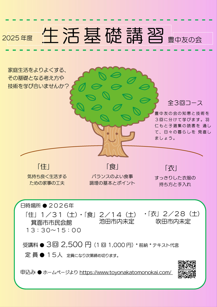 その第一歩を踏み出すためのよい知恵や考え方が満載の全3回コース(住・食・衣)です。